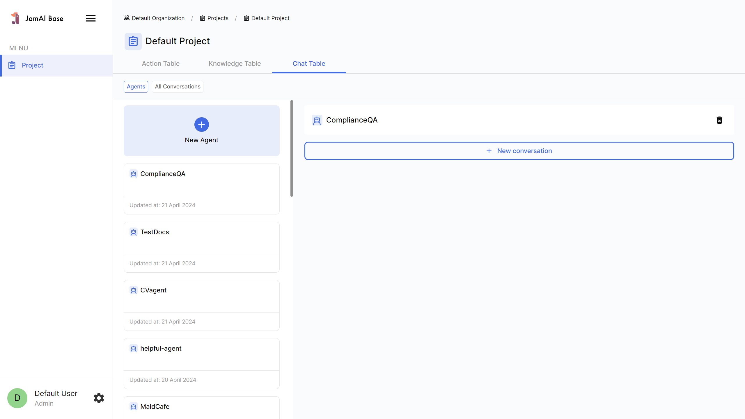 3. Select the **LLM Agent** that you have created and create a **new conversation.**