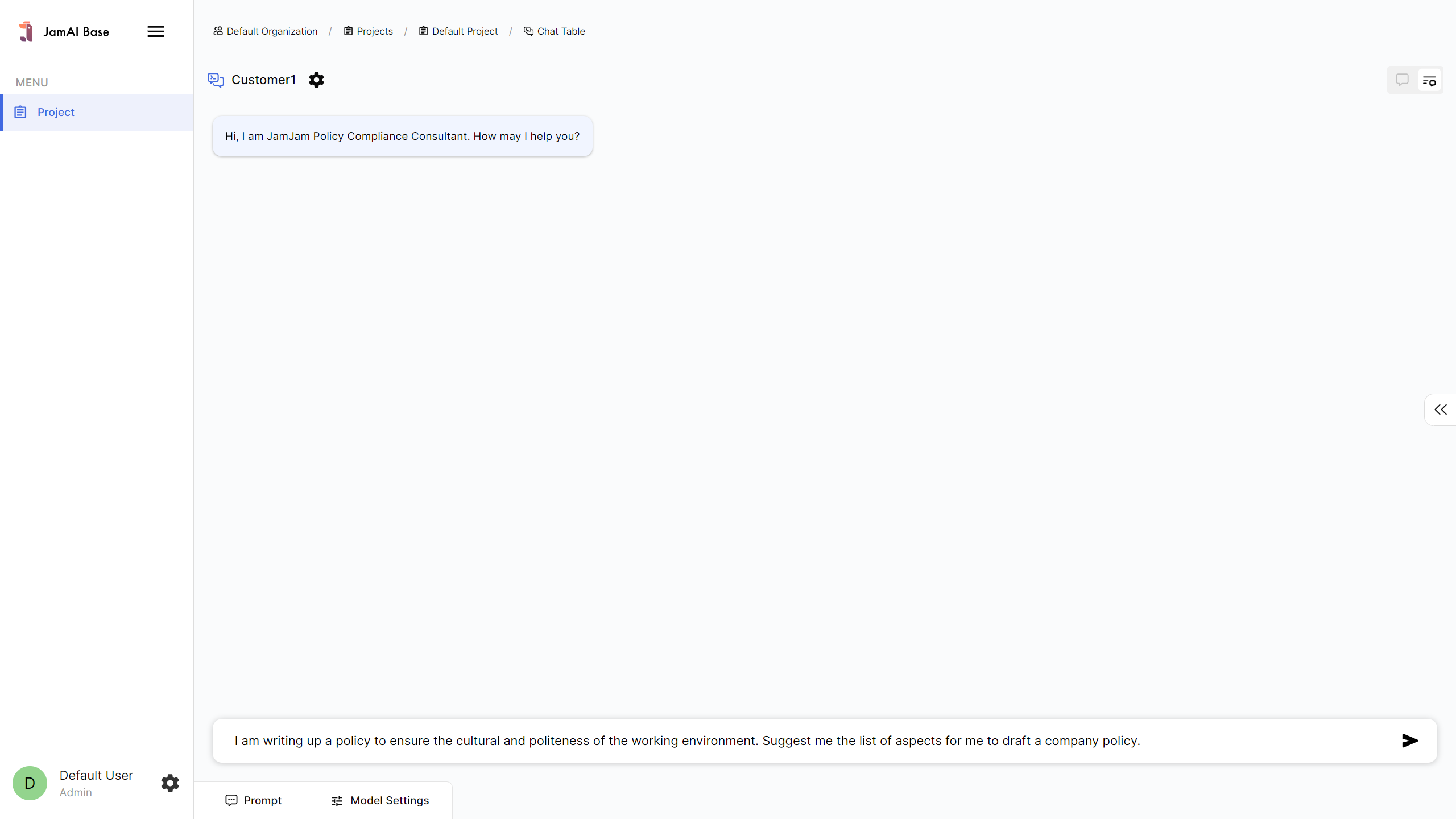 2. If you are in **Conversation View. Click** <img src="https://949944545-files.gitbook.io/~/files/v0/b/gitbook-x-prod.appspot.com/o/spaces%2FRNnvWSkFcg9eUeFklENf%2Fuploads%2FjbPAdx9ZUzUSjRVu5FXT%2Fsettings.png?alt=media&#x26;token=0f8efd18-a9a3-437d-ba59-89f230375670" alt="" data-size="line"> to bring up the Model setting.